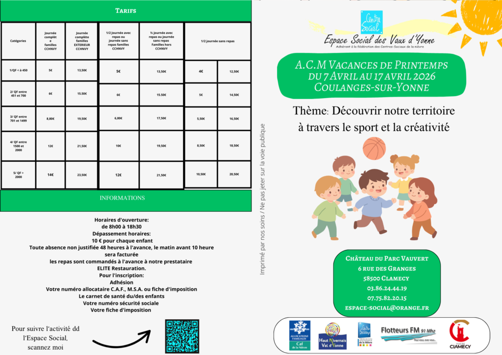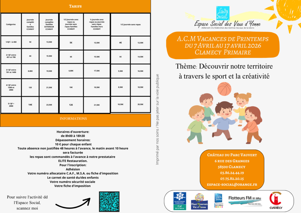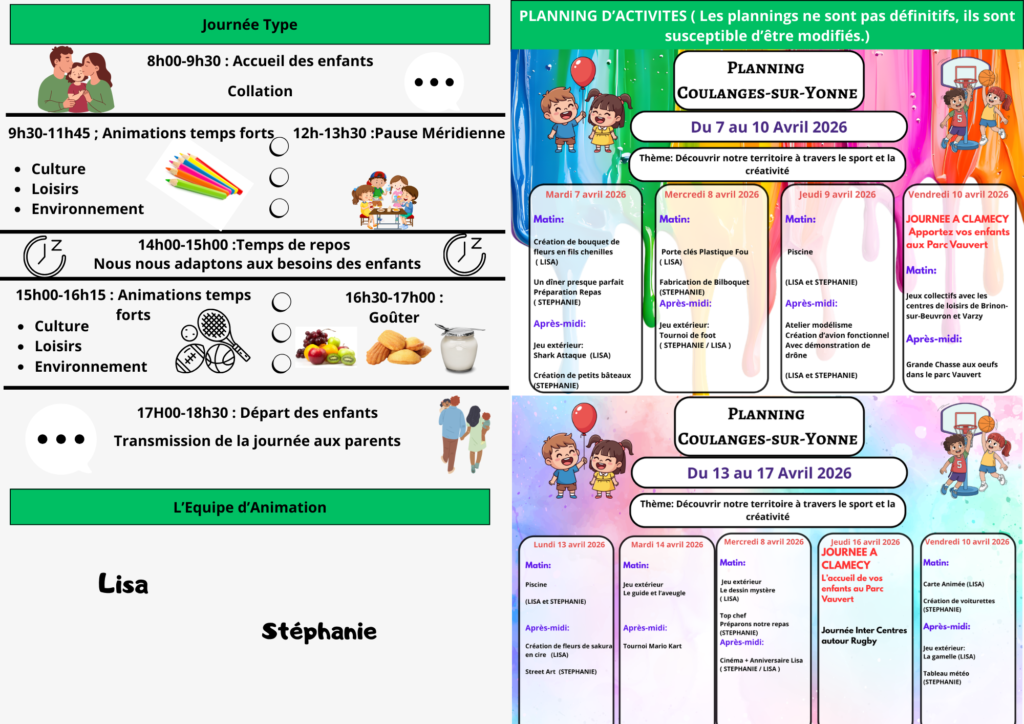 Ouverture des inscriptions pour les vacances du mois d’avril 2026 vont commencer Lundi 16 mars 2026.