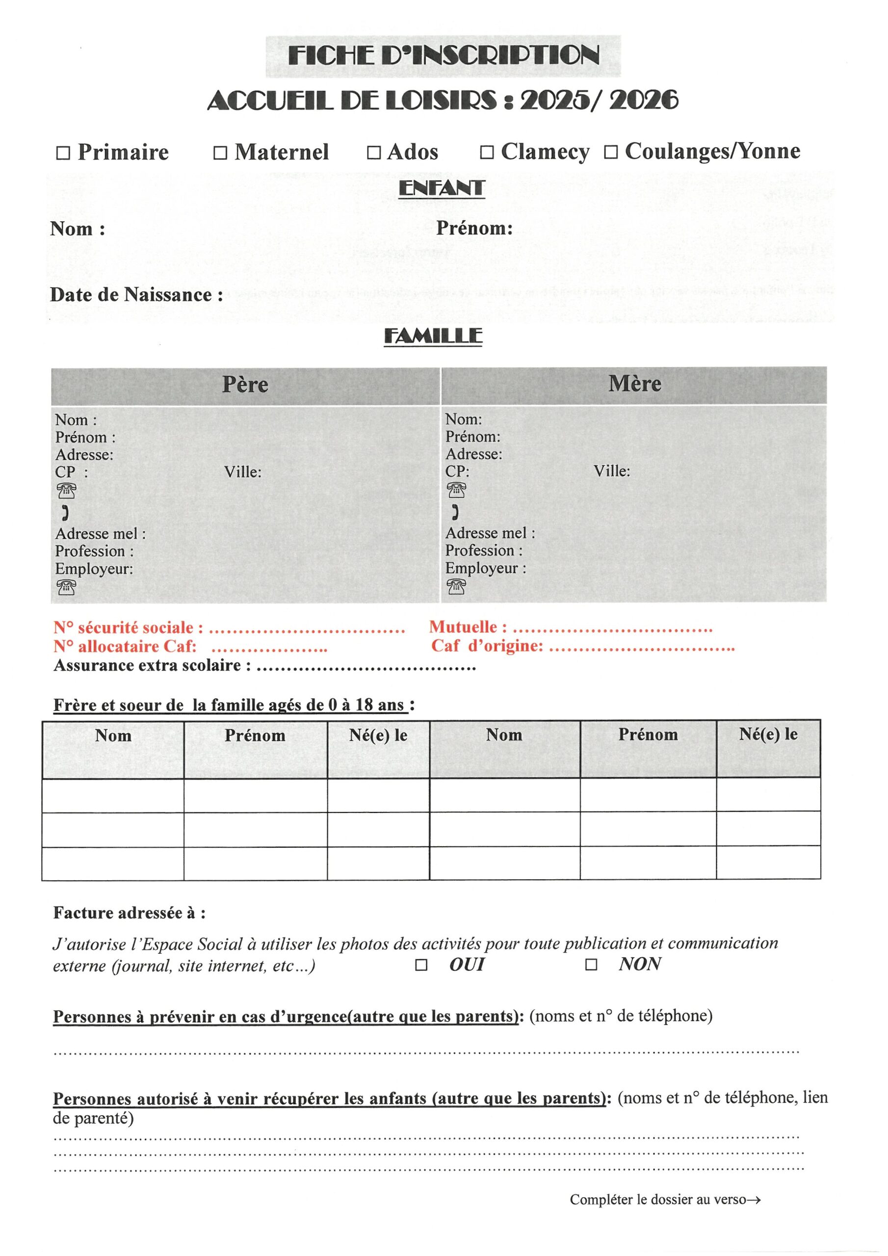 Fiche d’Inscription Accueil de Loisirs 2025/2026